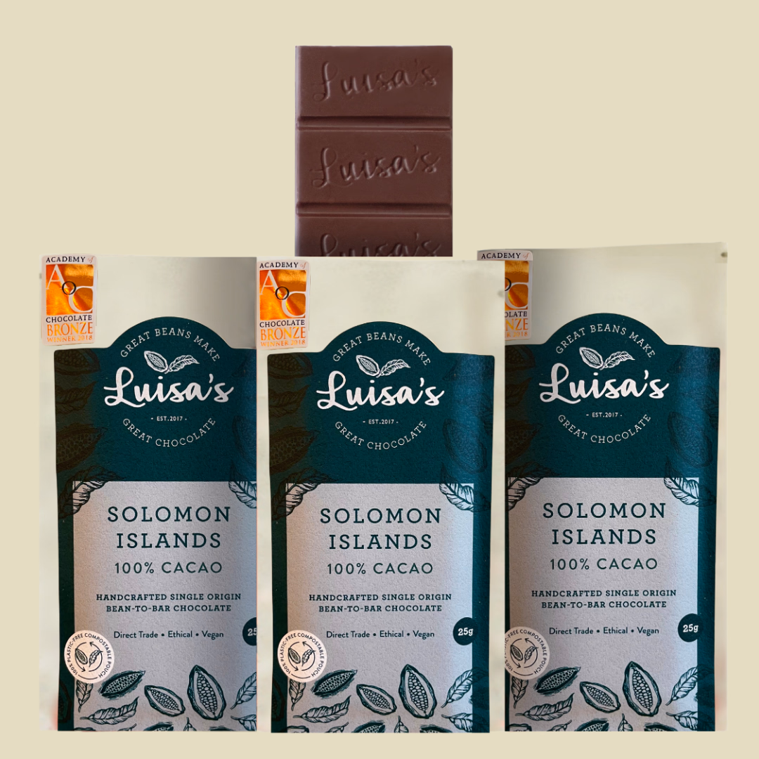 Handcrafted from bean-to-bar by Luisa at her little chocolate makery in Nottingham.