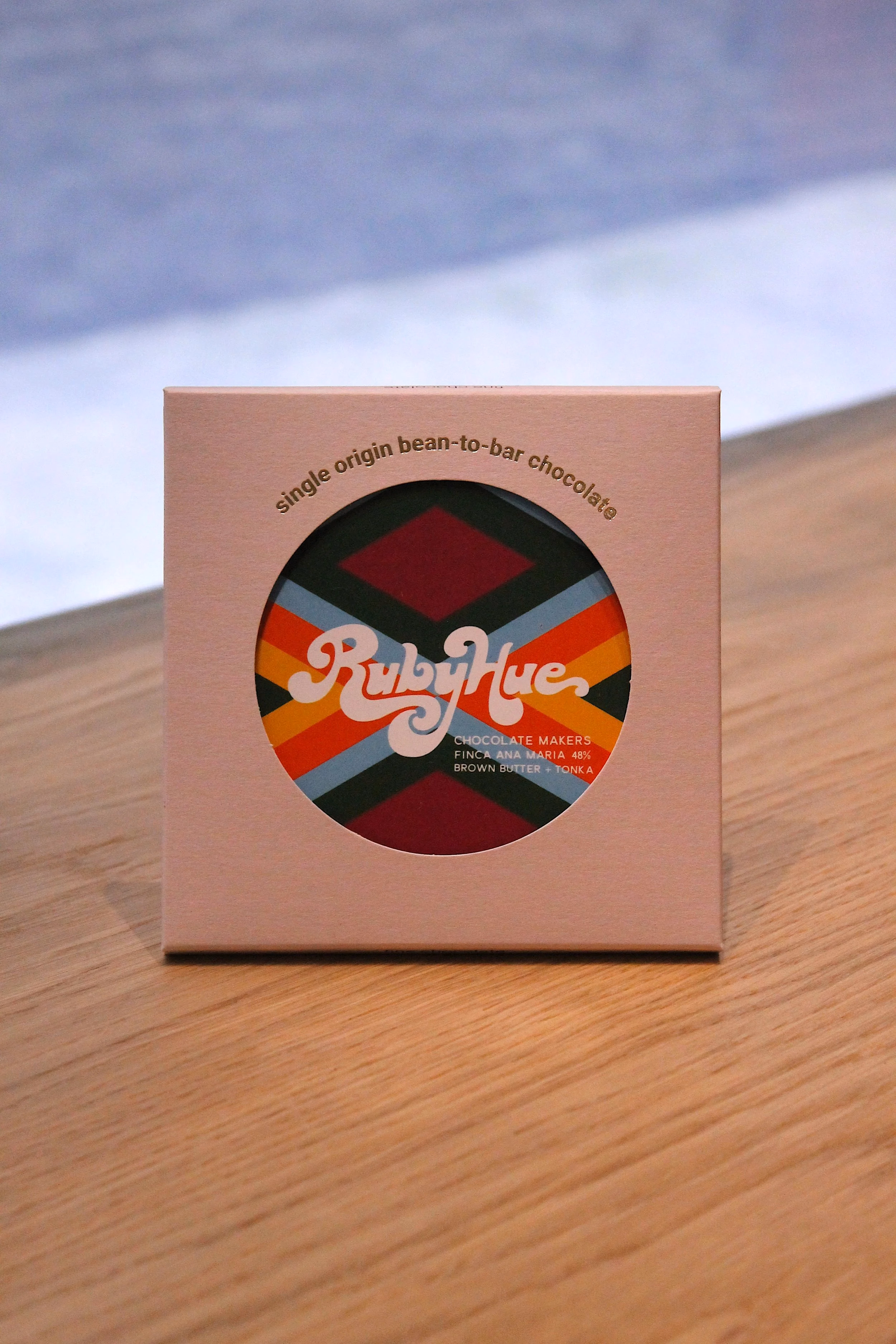 In northern Guatemala lies Laguna Lachuá, a warm oasis that is home to many Q’eqchi’ Maya indigenous farmers who cultivate crops such as cacao and corn. The cacao used in this bar is fully traceable, single-estate grown, and produced exclusively on Finca Ana Maria. The farmers ferment the beans for six days in boxes to enhance their unique flavour before sun-drying and shipping them to Ruby Hue.