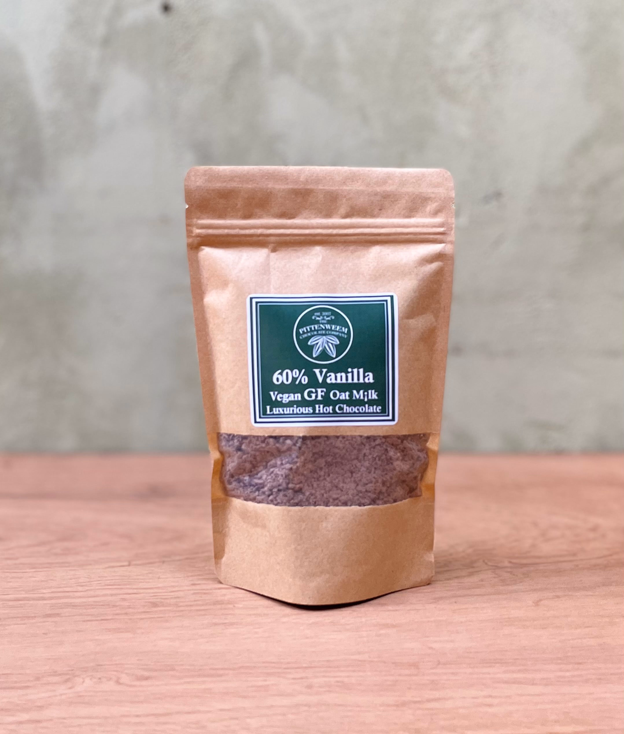 Luxurious 60% Dairy Free GF oat milk vegan hot chocolate, handmade by the Pittenweem Chocolate Co.
