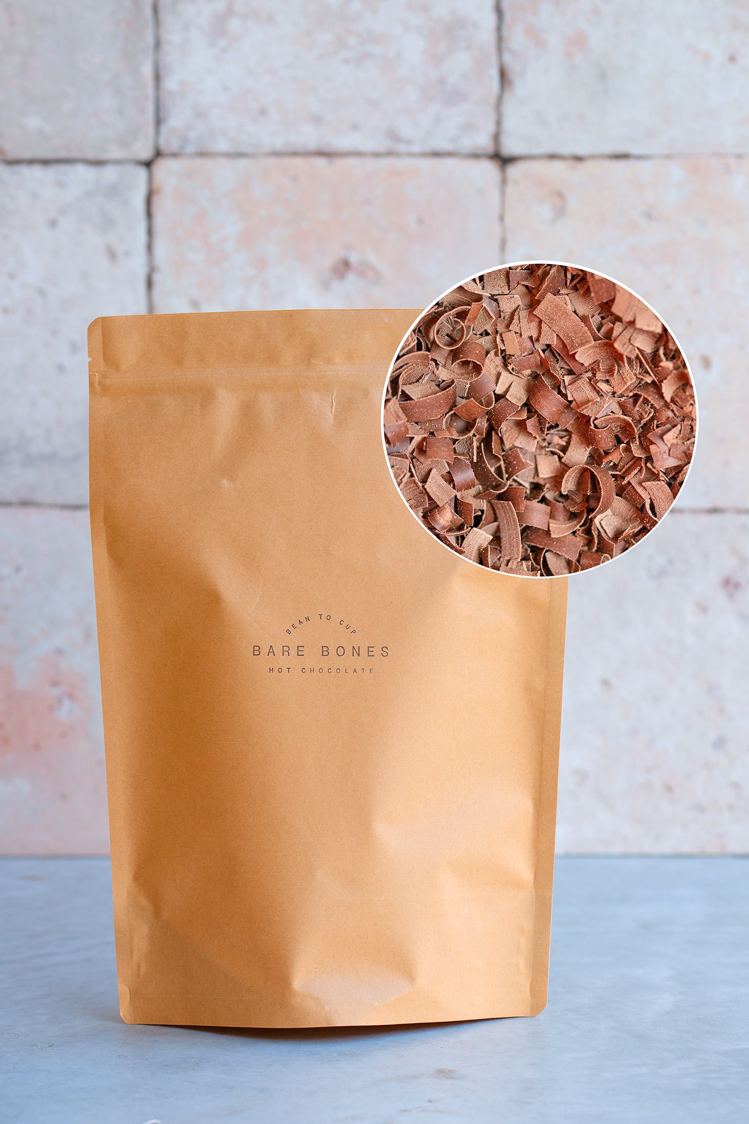 This hot chocolate is made using our award-winning Madagascan bean to bar chocolate, shaved into perfectly formed flakes. It is a beautifully balanced hot chocolate. Rich in deep chocolate tones and bursting with taste notes of red berries and maple syrup – blending well with both cows milk and alternatives.