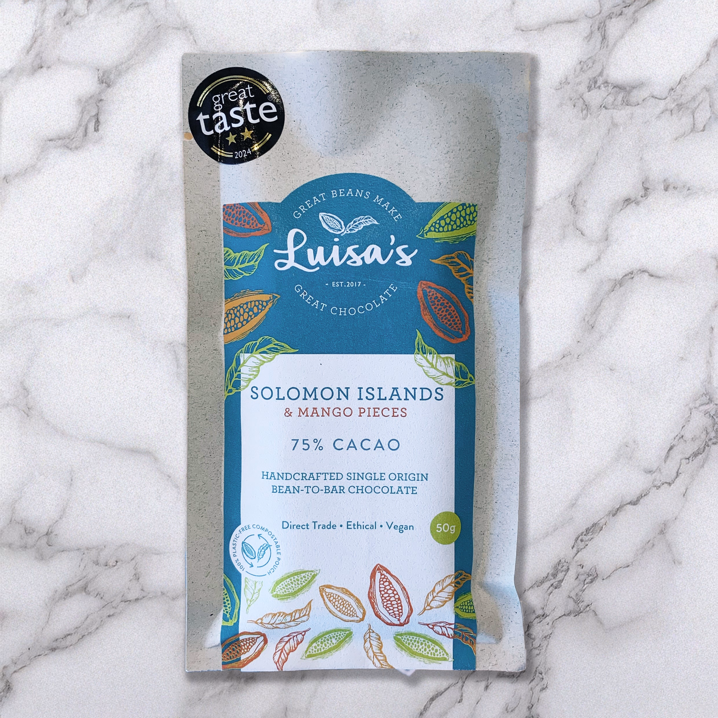 This combination is a perfect and bold testimony to our Solomon Islands cacao and it's compatibility with other flavours. A refined taste journey, every bite is refreshingly rich and complex, and utterly satisfying.