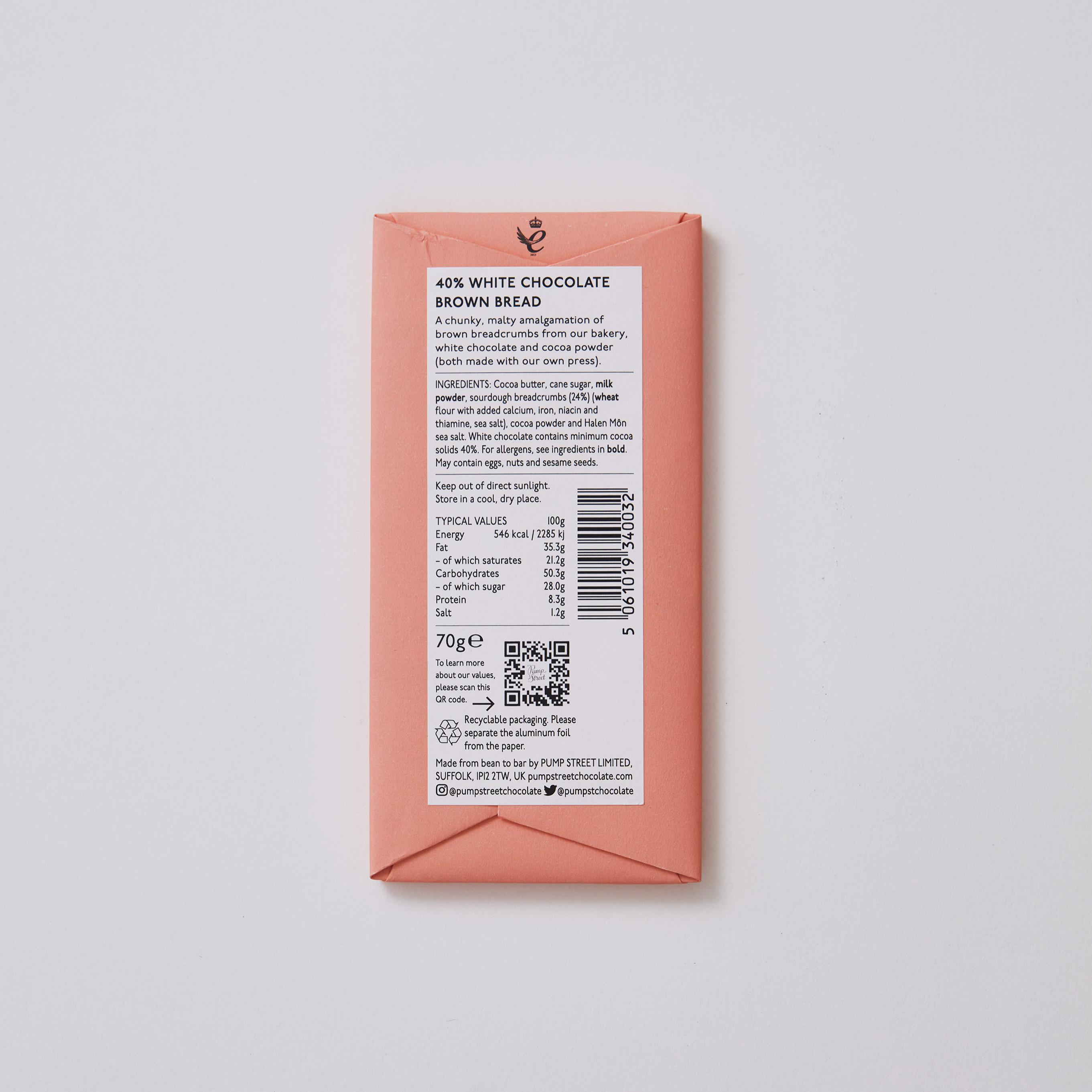 A delectable fusion of chunky, malty bread pieces and sweet, toffee-ish white chocolate, crafted from our proprietary cocoa press and Ecuadorian cocoa beans from Hacienda Victoria. While it may appear brown due to the inclusion of bread, rest assured, it's a tantalizing white chocolate experience truly unlike any other.