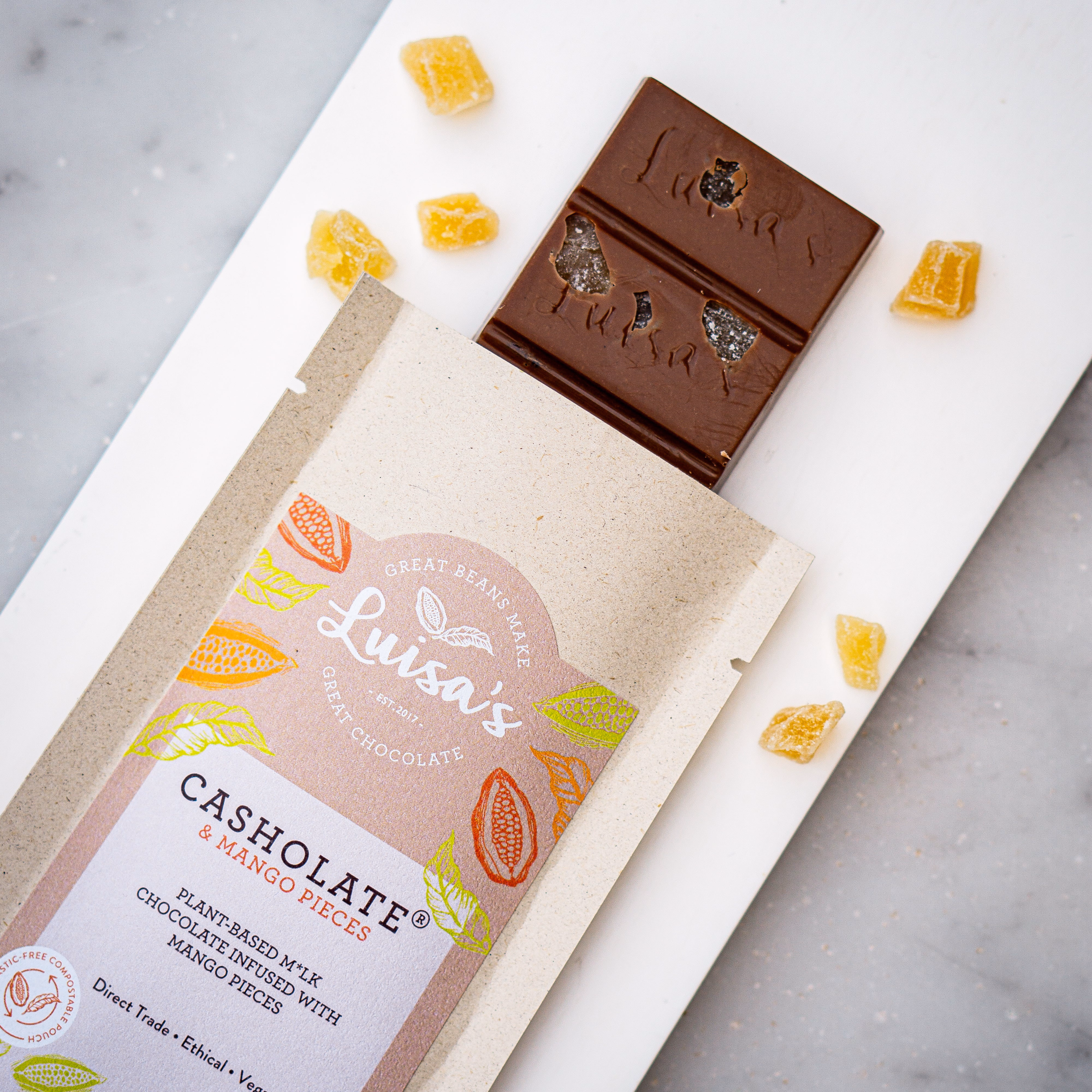 Ingredients: unrefined sugar, cashew nuts, cocoa butter, cacao mass, mango, Madagascan vanilla.