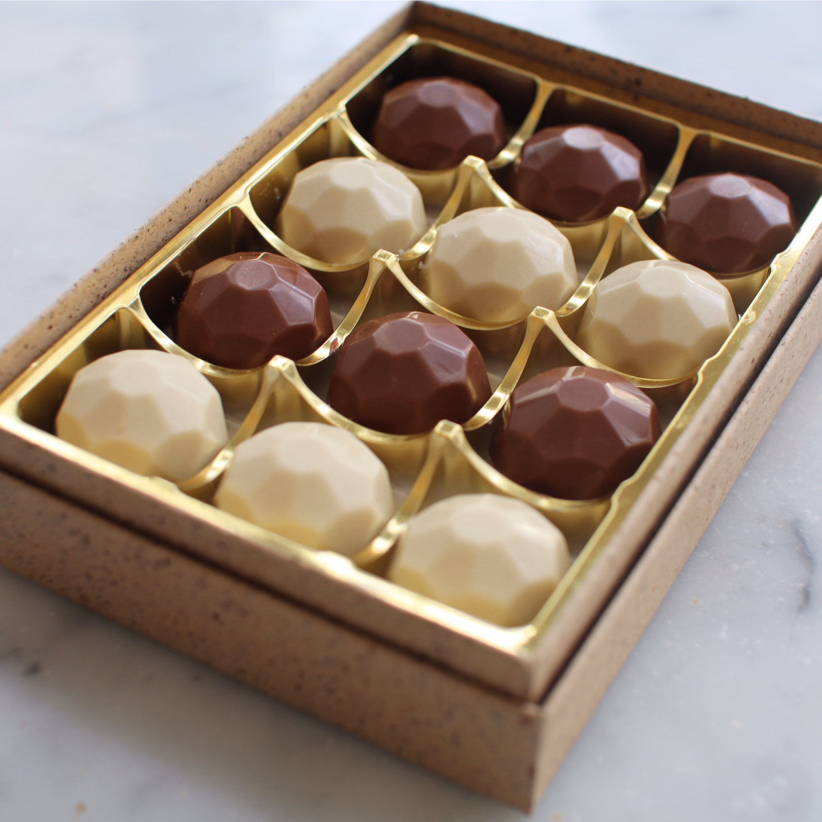 This box contains 12x individual chocolates; 6x casholate, 6x white casholate.