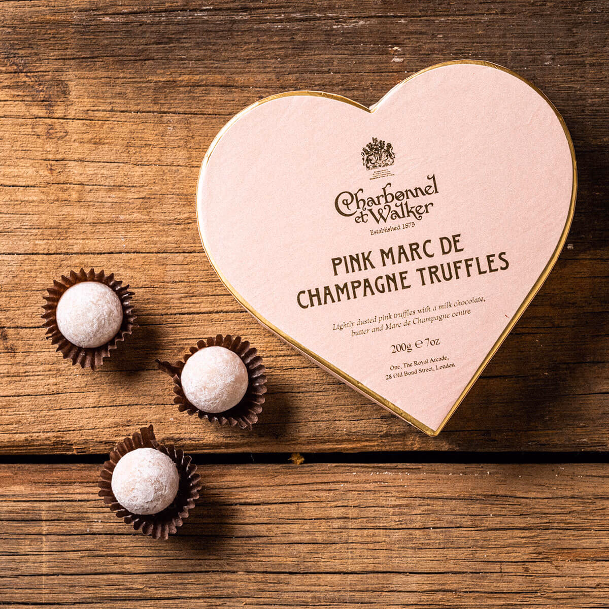 Charbonnel Et Walker Pink Marc De Champagne Truffles Heart 200g