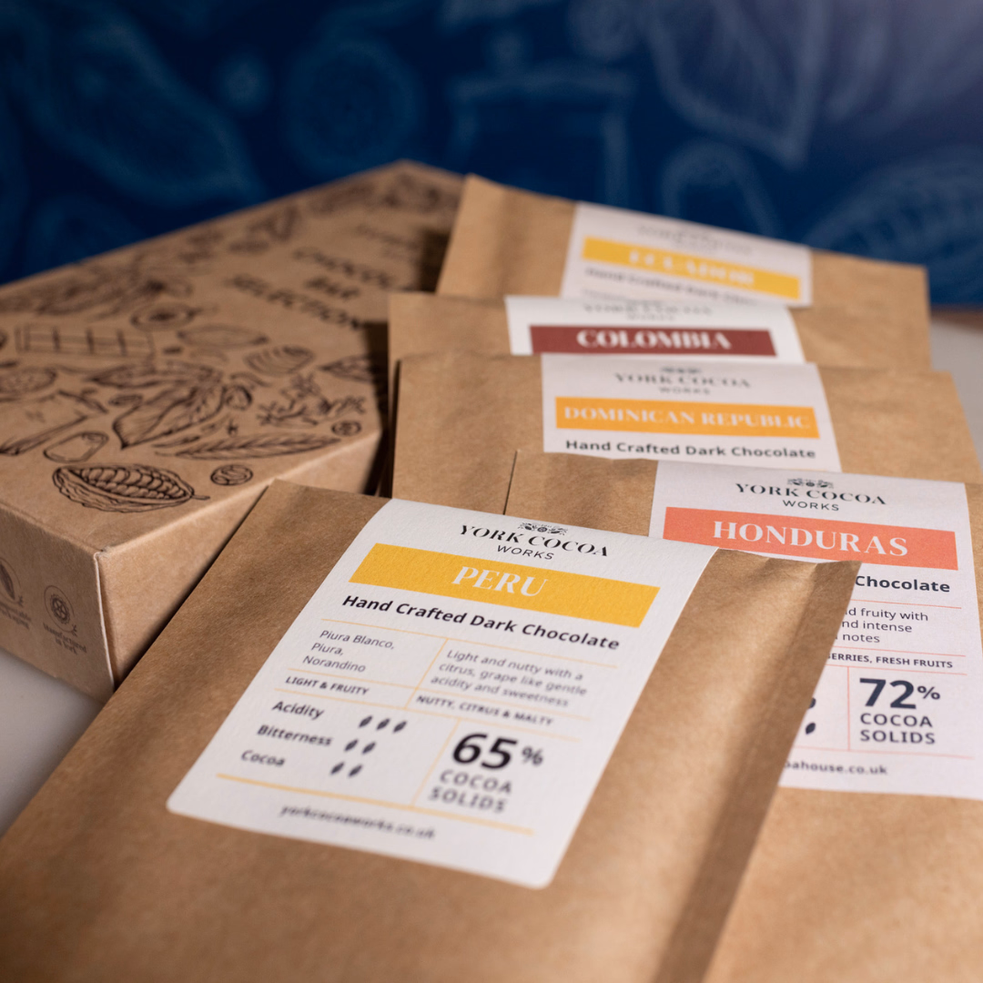 This Gift Set includes 5 bars from across our signature dark chocolate bar range.