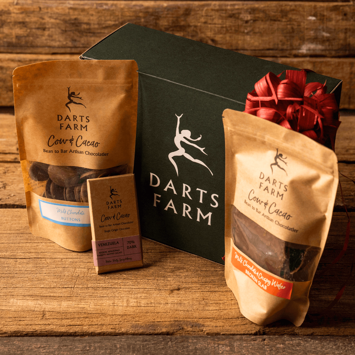 A selection of our Cow & Cacao chocolates, handcrafted on the farm by our Chocolatiers.