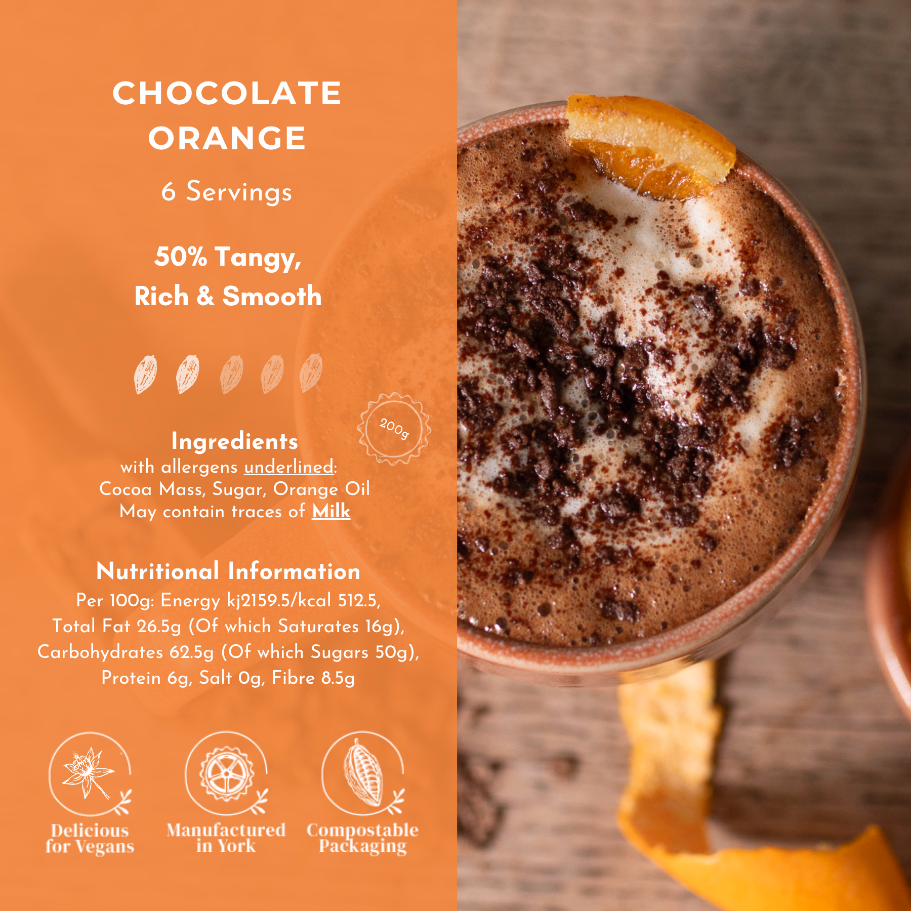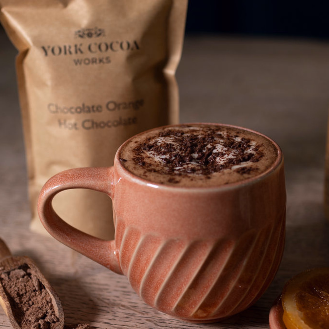 Our Chocolate Orange Hot Chocolate flakes make a rich and smooth Hot Chocolate - handcrafted at our Chocolate Manufactory York Cocoa Works using our cocoa beans combined together with sugar and a zest of natural orange oil to give a fruity chocolate indulgence in celebration of one of the country's favourite chocolate treats originally crafted by the Chocolate makers of York.