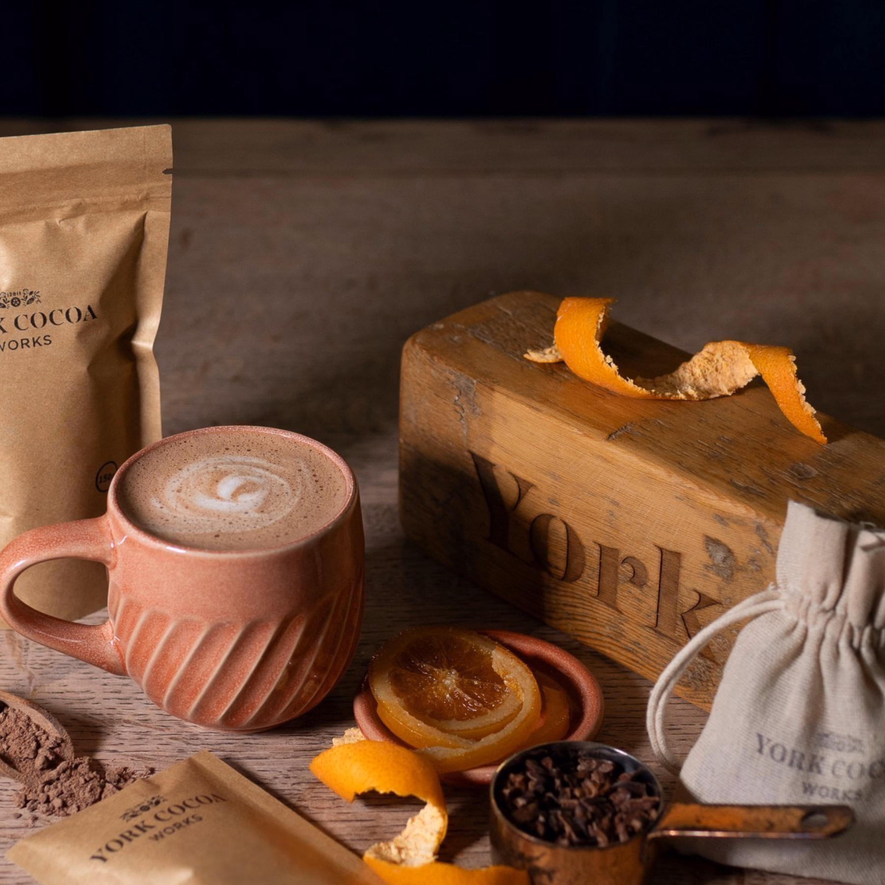 Our Chocolate Orange Hot Chocolate flakes make a rich and smooth Hot Chocolate - handcrafted at our Chocolate Manufactory York Cocoa Works using our cocoa beans combined together with sugar and a zest of natural orange oil to give a fruity chocolate indulgence in celebration of one of the country's favourite chocolate treats originally crafted by the Chocolate makers of York.