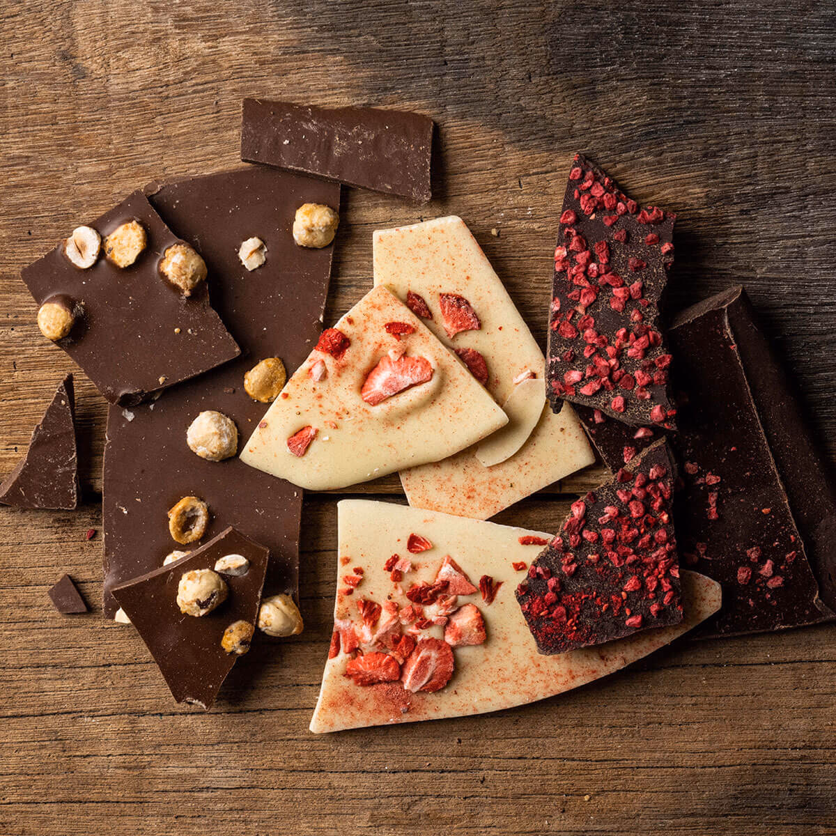 Handcrafted by our Chocolatiers using our house milk, dark and white chocolate, along with perfectly paired toppings. Approx. 100g