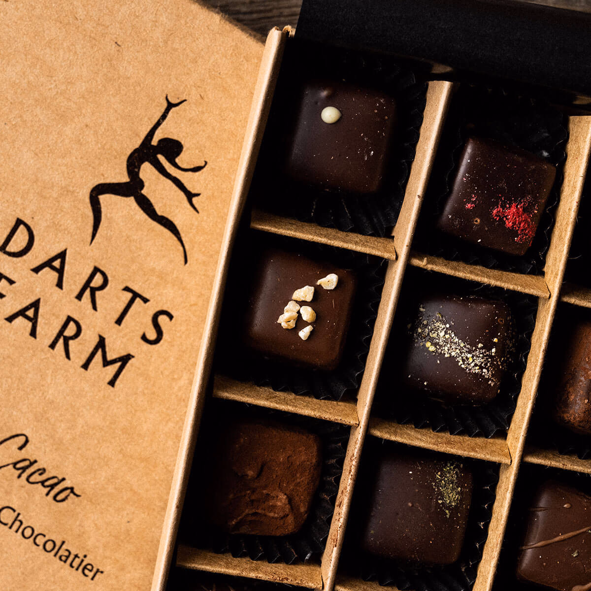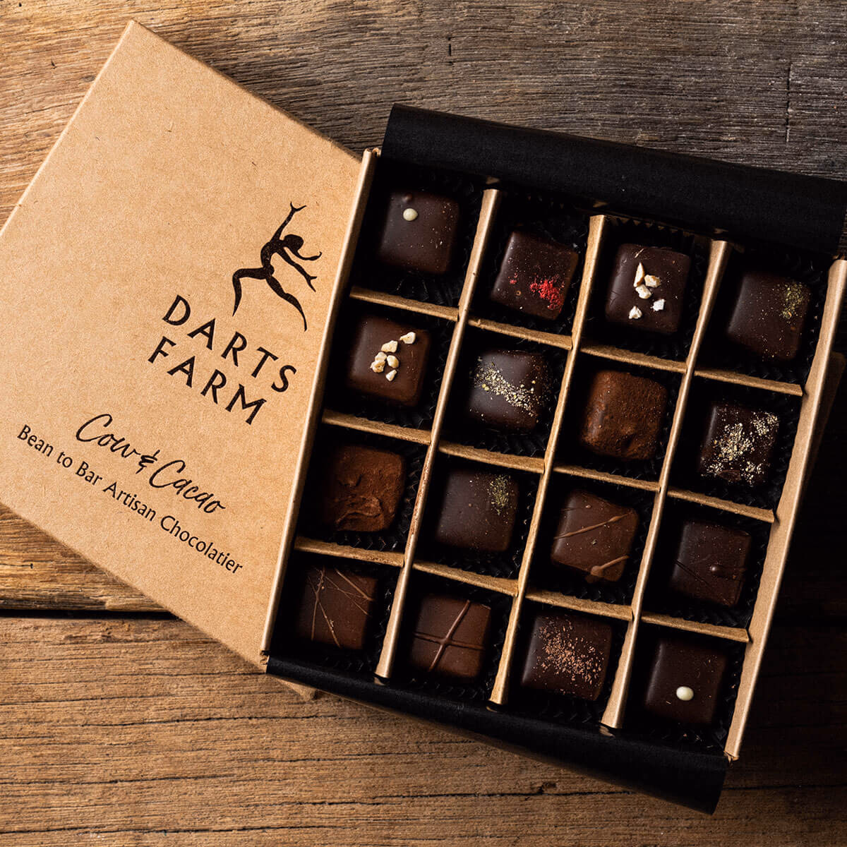Handcrafted by our Chocolatiers, here on the farm using our bean-to-bar chocolate and local, seasonal ingredients. From Single Origin Madagascar and Salted Caramel, to Earl Grey and Hazelnut Praline.