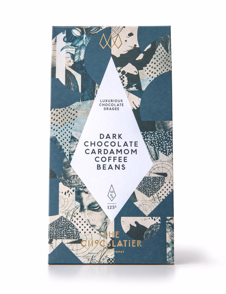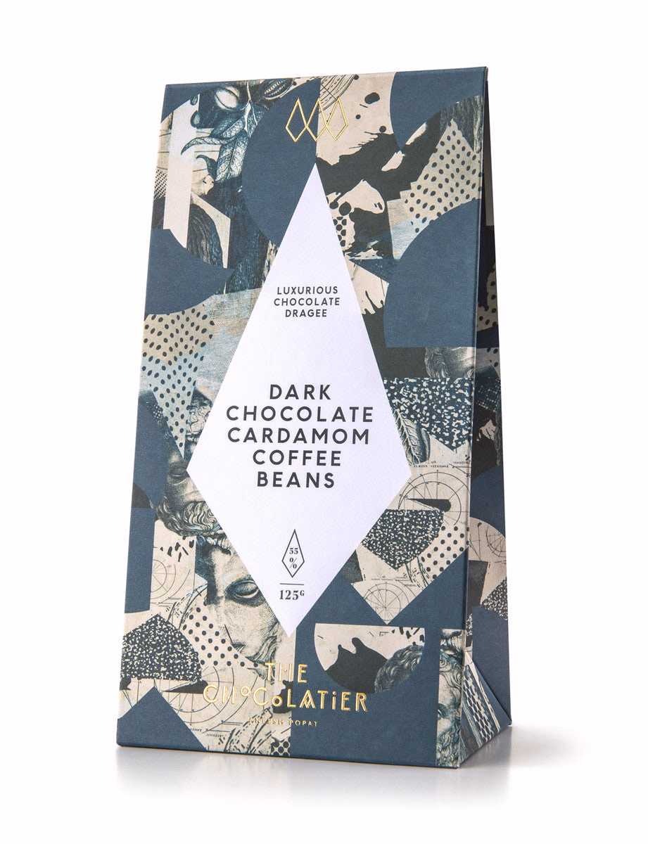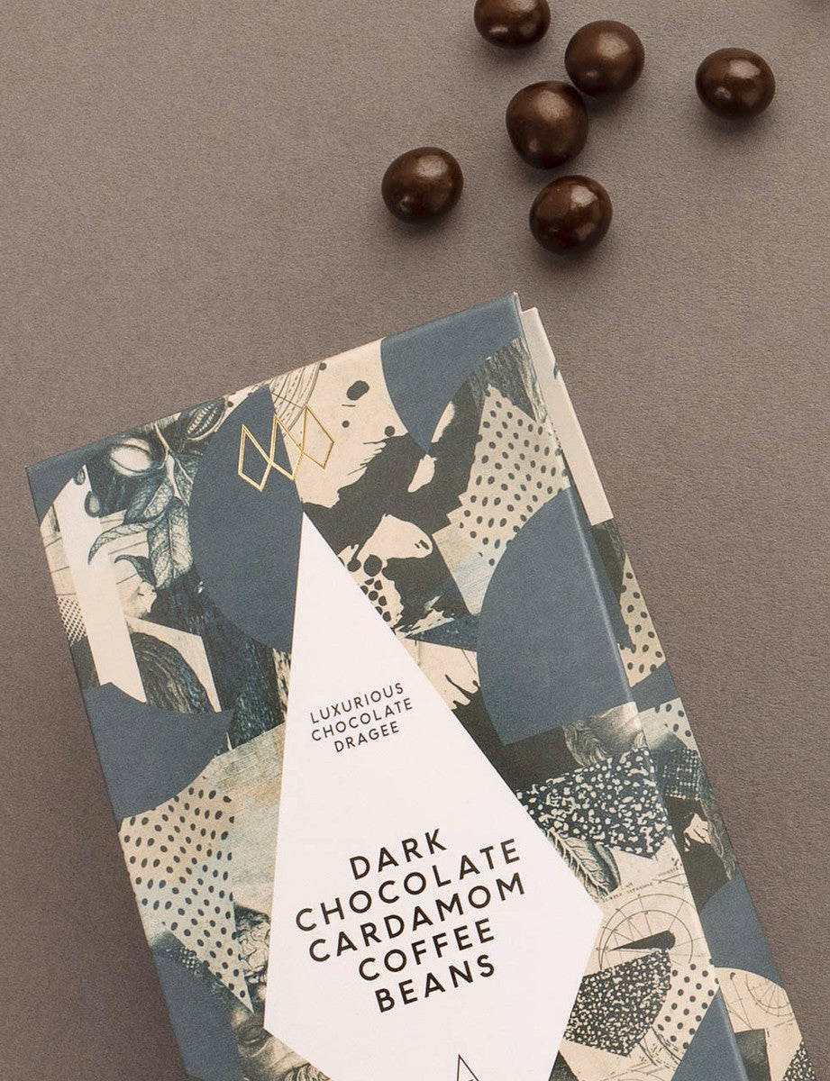 Slow-roasted crunchy coffee beans lavishly covered in smooth dark chocolate infused with sweet and aromatic cardamom.