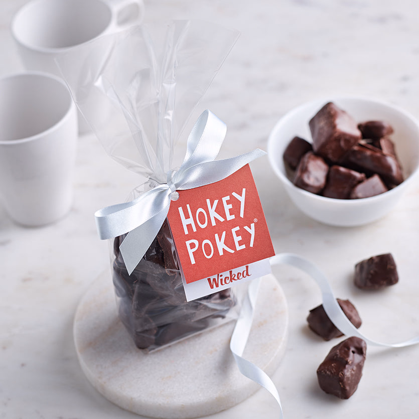 We find that the dark chocolate balances the sweet honeycomb perfectly. Surprisingly to some, we sell just as much dark chocolate honeycomb as to milk chocolate honeycomb, Milkey Hokey Pokey - it's delicious. The perfect present to bring to a dinner party or a treat for the cupboard.