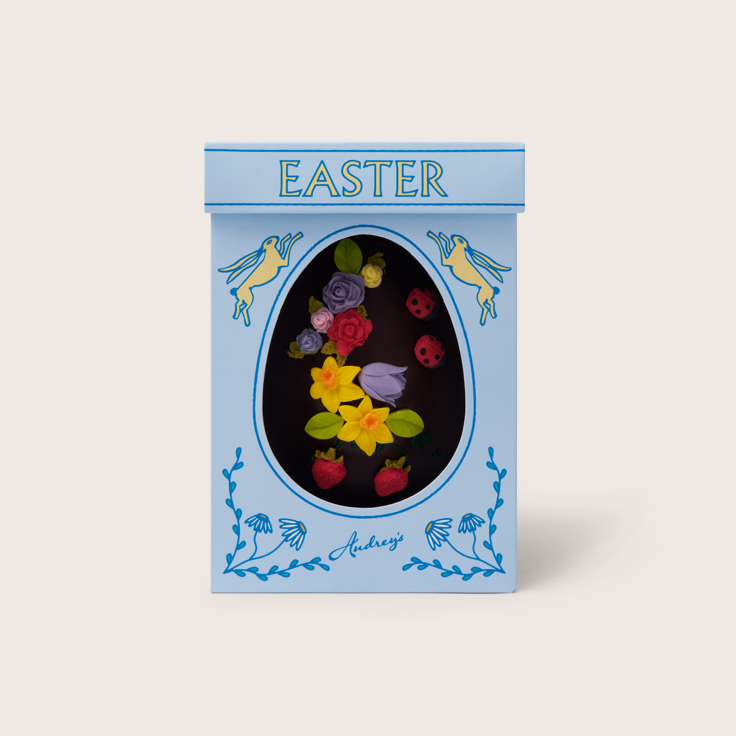 The Queen (227g) is filled with dark chocolate Easter shapes.