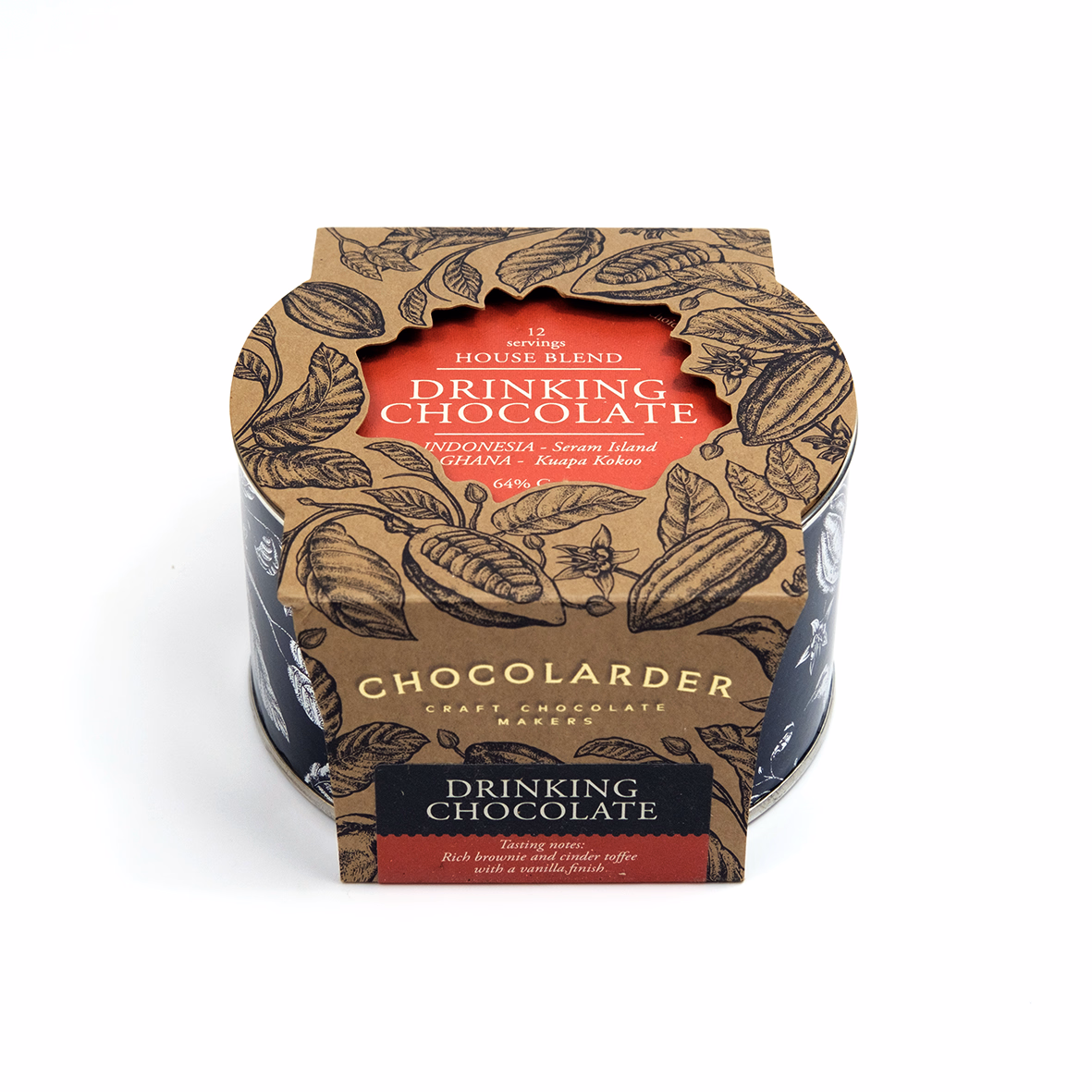 As you know, all of our chocolate bars are single-origin, and the decision to create our House Blend, mixing two chocolates together was not taken lightly. The marriage of the right chocolates was a painstaking process, ensuring extra length and depth to the flavour that lingers on the tongue. The complexities of the Ghanaian and Indonesian flavours both complement each other perfectly, blending together in a dreamy combination. You may have some difficulty making your tin last!