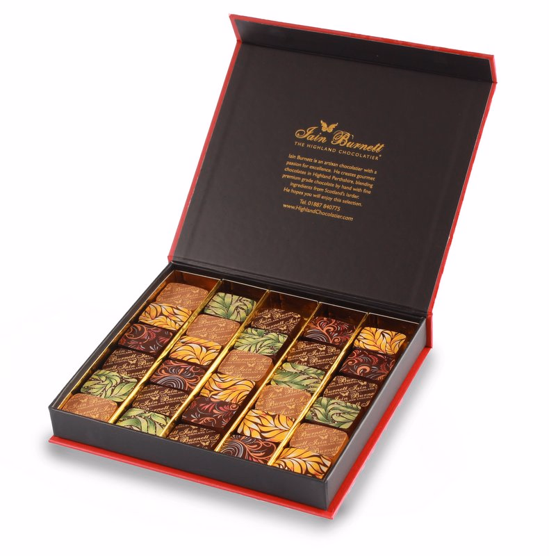 A selection of Velvet Truffles and Pralines expertly chosen by Iain Burnett to pair perfectly with the following single malt whiskies from Glenmorangie including: Glenmorangie The Original, Glenmorangie Nectar D'Or, Glenmorangie Lasanta, and Glenmorangie Signet. Complete with pairing notes.