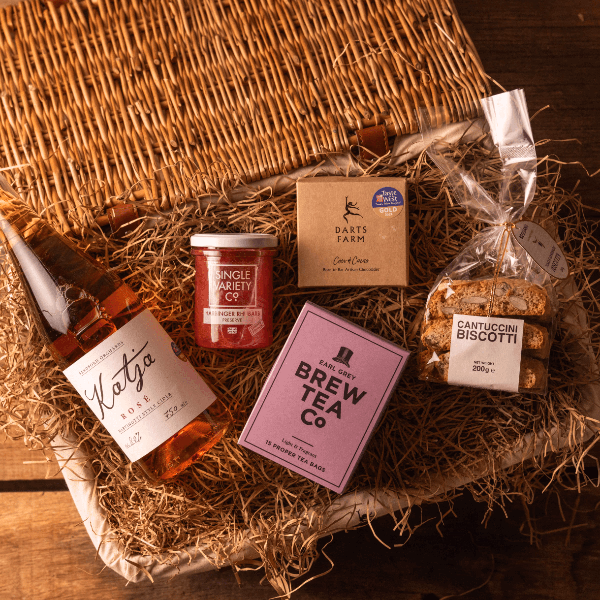 A lovely hamper to surprise a loved one or simply say thank you. From our handmade Cow & Cacao chocolate truffles, Single Variety preserve and Katja Rose sparkling cider to the finest Italian biscotti and speciality tea.