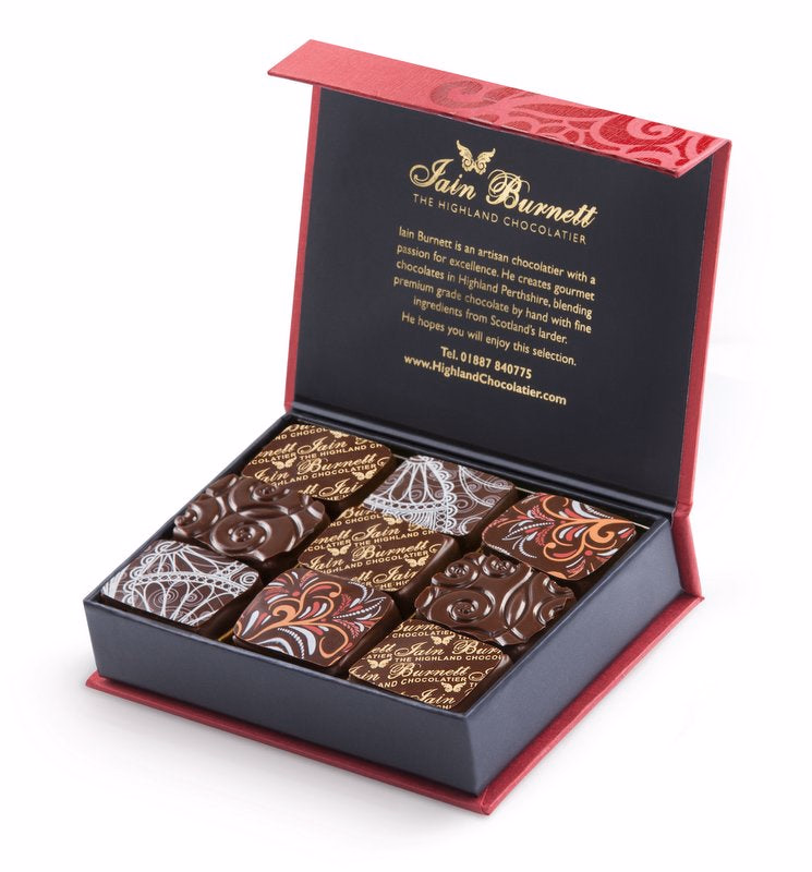 A selection of Velvet Truffles and Pralines expertly chosen by Iain Burnett to pair perfectly with single malt whiskies from The Macallan including Macallan Amber, Macallan Gold, Macallan Sienna, and Macallan Ruby. Complete with pairing notes.