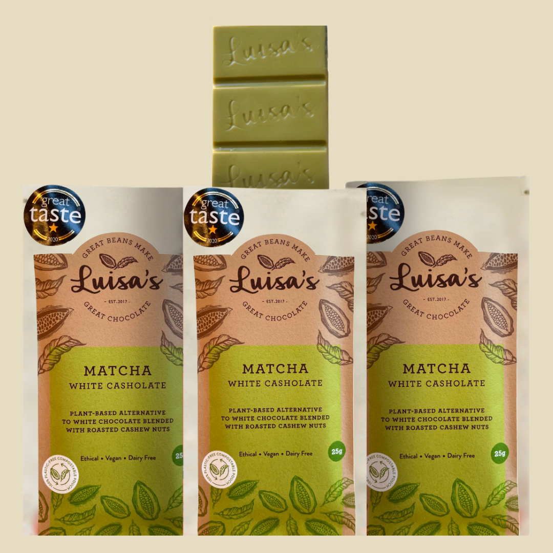 Handcrafted from bean-to-bar by Luisa at her little chocolate makery in Nottingham.