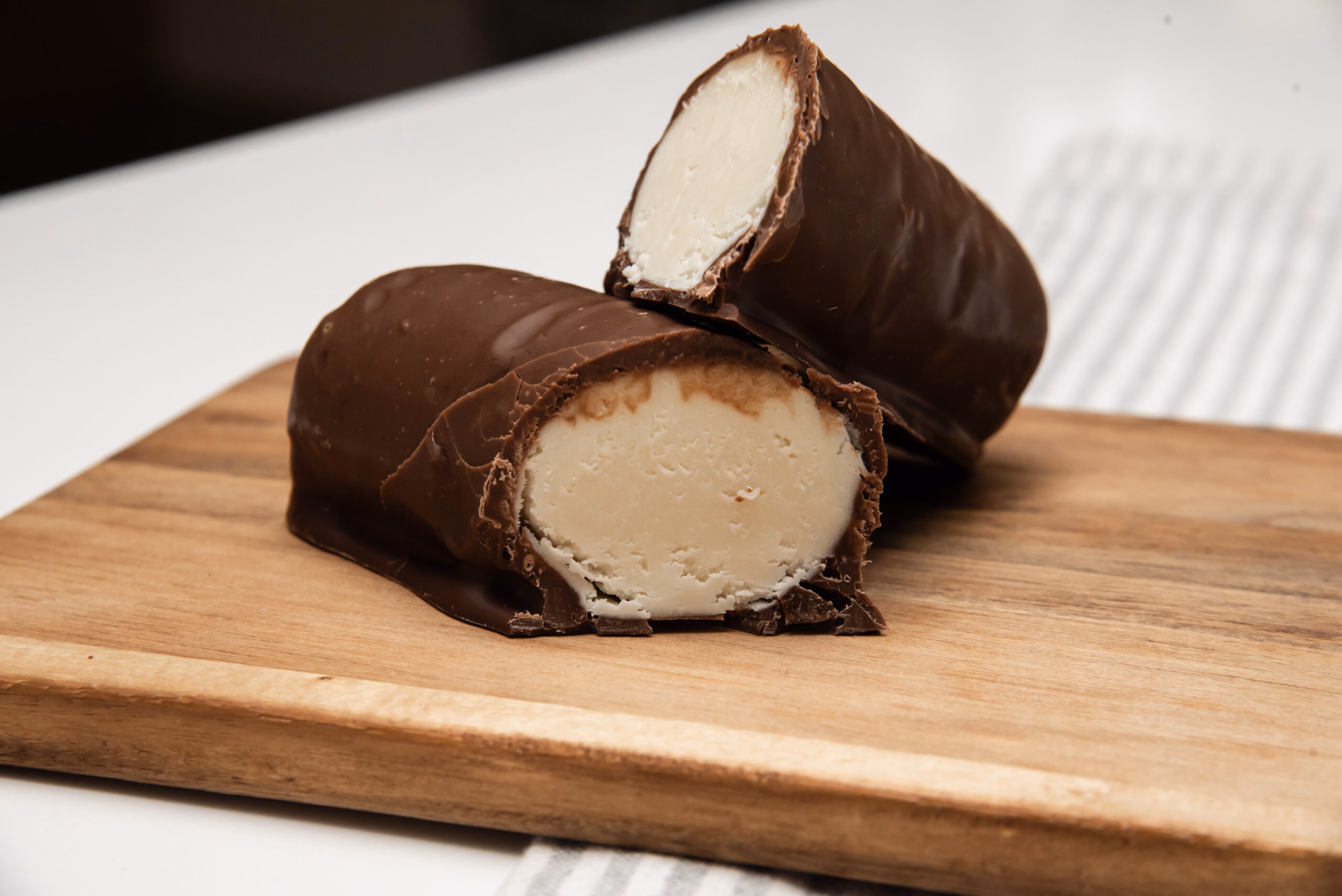 White chocolate Cointreau infused ganache enrobed in smooth milk chocolate, the perfect balance of cocoa and warming citrus liqueur. simply slice and enjoy!