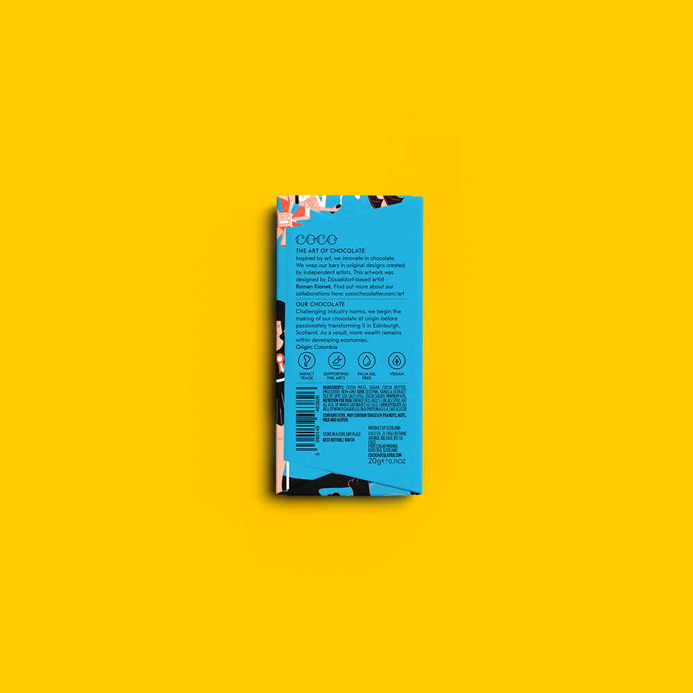 Ingredients: Cocoa Mass, Sugar, Cocoa Butter, Emulsifier: Non-GMO Soya Lecithin, Vanilla Extract, Isle of Skye Sea Salt (<1%).