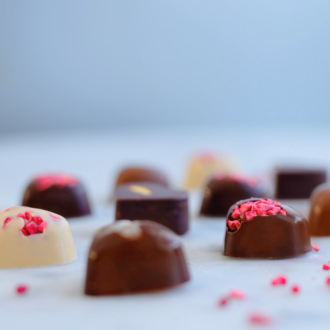 Treat someone you love with our beautiful mini artisan chocolate heart box. Featuring 12 chocolates including White Raspberry, Dark Raspberry, Sicilian Orange, Honeycomb and Casholate in our signature heart shapes.