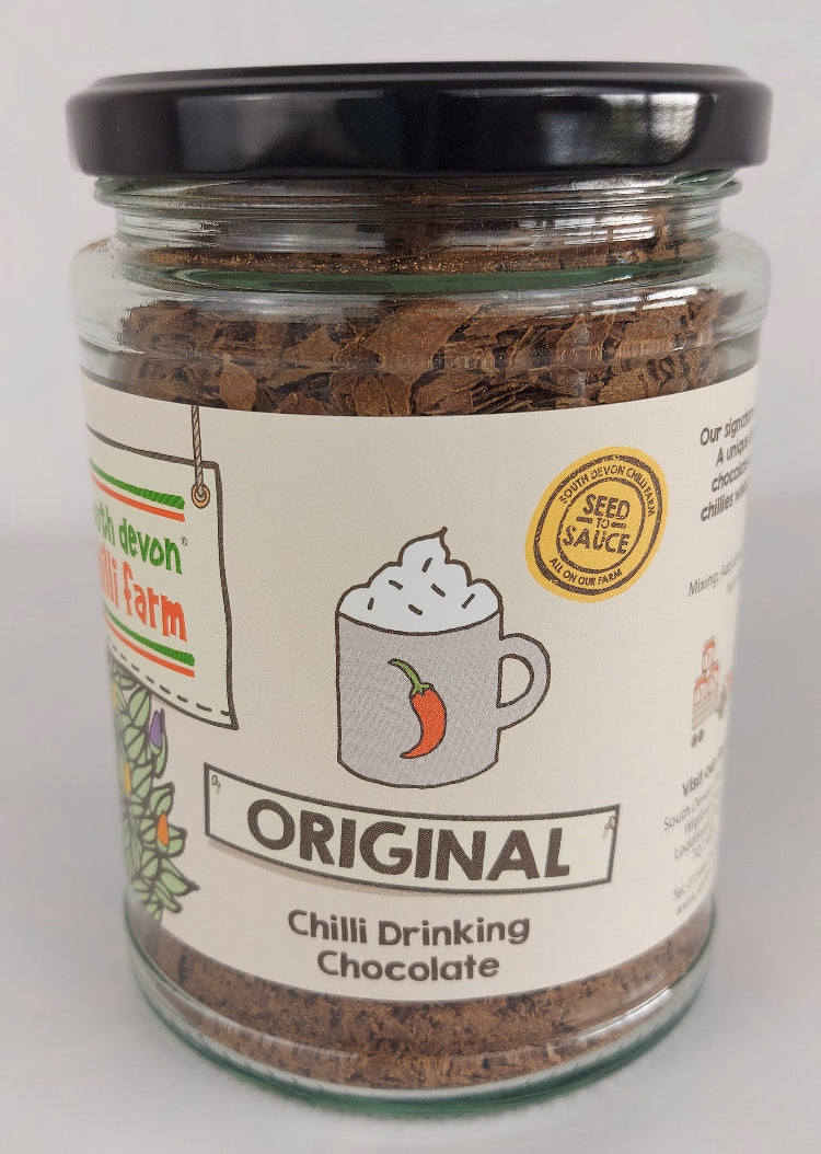 Our drinking chocolate is made purely of 55.5% cocoa chocolate combined with our Devon chilies, grated into chunky flakes.