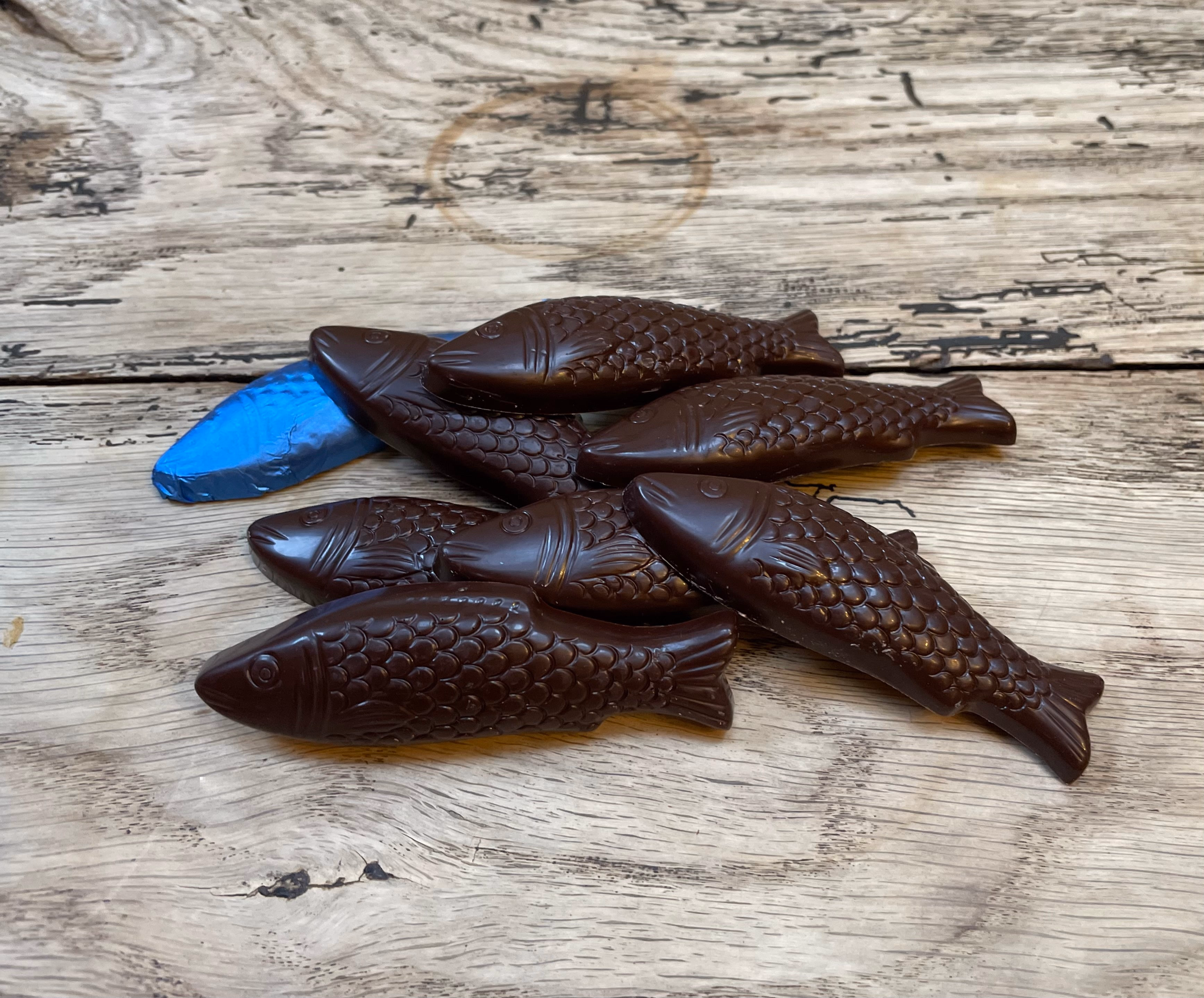 'Our Own' Large Solid Pittenweem milk & dark fish each sachet will contain one foil fish,(Blue:Dark/Green:Milk)