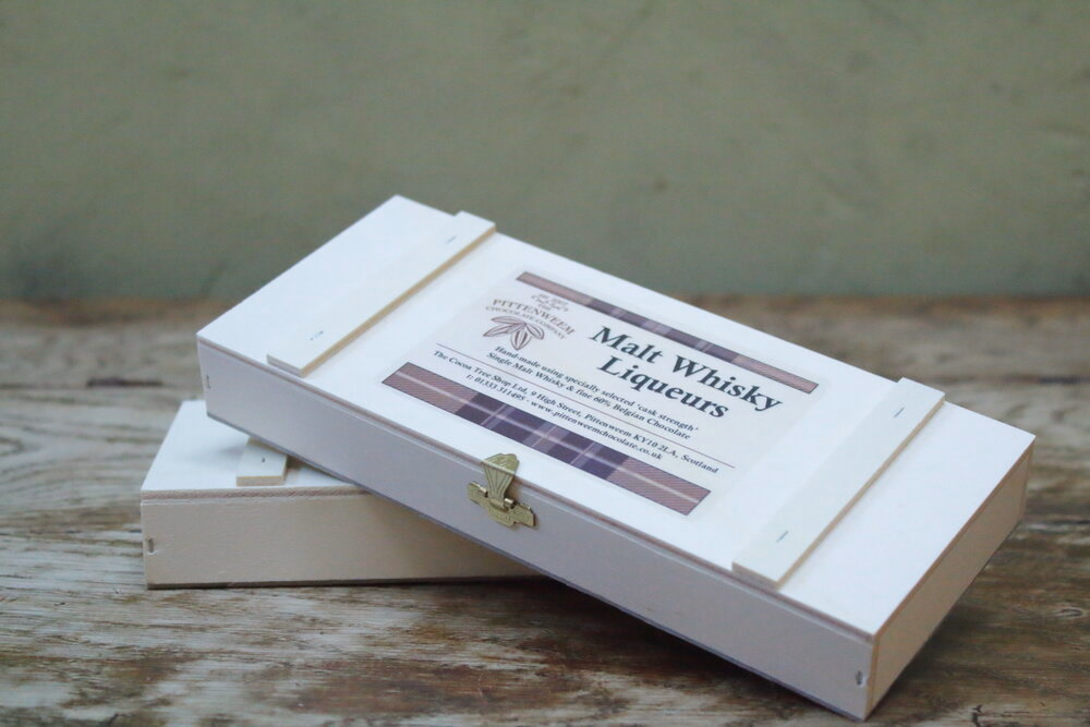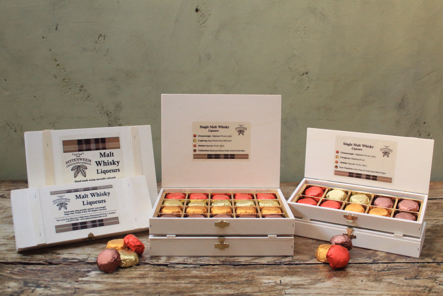 Perfect artisan gift for the malt whisky connoisseur – an exclusive collaboration between the Pittenweem Chocolate Co. and our Belgian chocolate makers.
