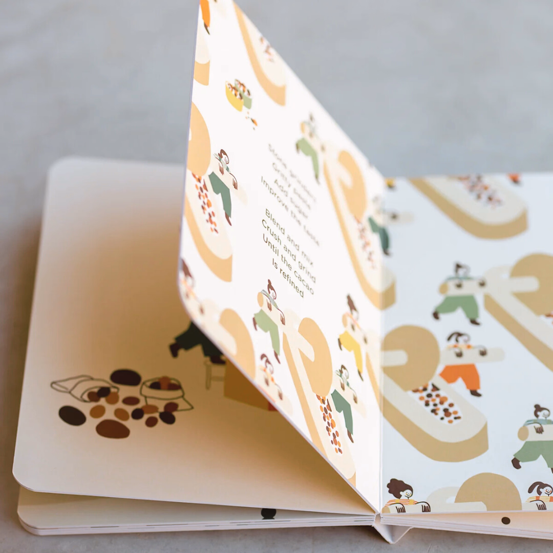 As any cacao farmer or craft chocolate maker will tell you, transforming a cacao seed into a chocolate bar is a complex process. ‘The Chocolate Seed’ gently explains the chocolate making process to children and their carers, using gorgeous illustrations and a soothing rhythm. The book was also designed to keep adults interested and engaged while reading it as well – Nettie found that she liked books where she could learn as she read to her newborns!