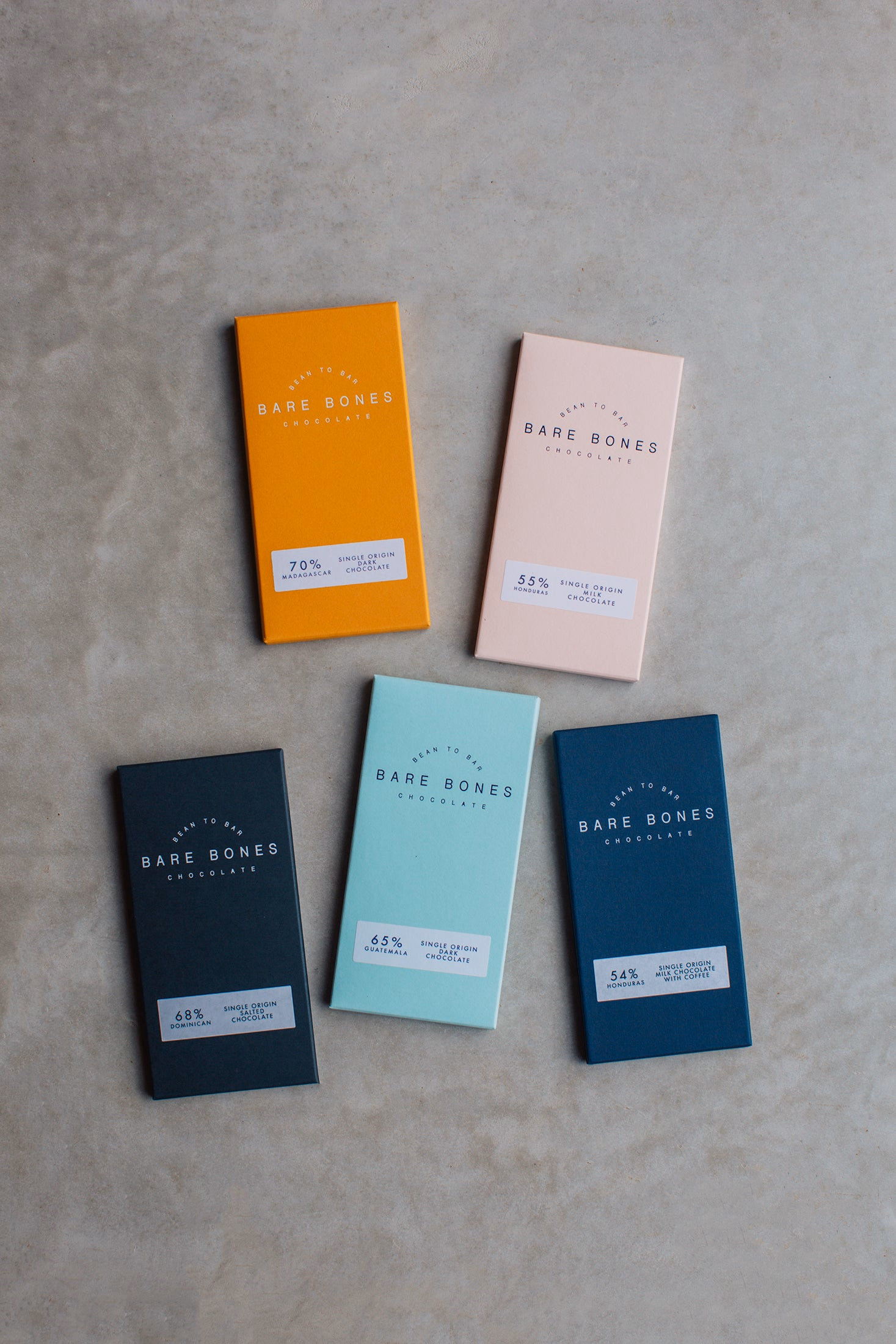 This listing is for one of each of our award-winning 70g bars! A beautiful journey through the different origins – highlighting the incredible favours of each bean. Pair with a tiny keepsake for someone special or add a Bare Bones tote as a gift bag.
