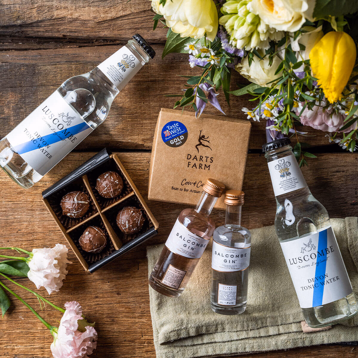 The perfect gift for the gin lover in your life. This gift includes a box of 4 bean-to-bar, single origin truffles handcrafted by our Chocolatiers paired with Salcombe Gin & Luscombe Tonic for two!