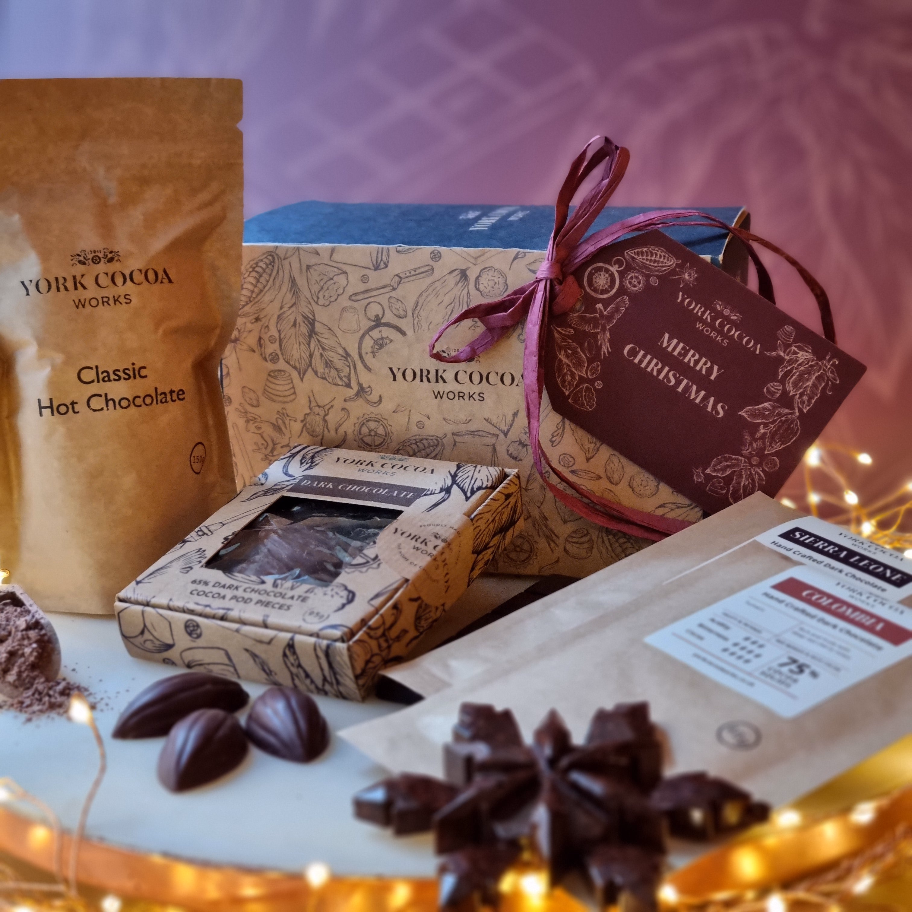 Our Vegan Chocolate Creations gift set includes our classic chocolate manufactory products - includes a 95g box of dark chocolate cocoa pods, a 40g bar of our single origin chocolate and a 200g packet of our Signature Classic Hot Chocolate so you can enjoy 6 hot chocolates in the comfort of your own home.